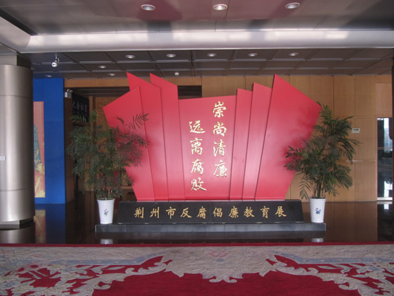 荆州市反腐倡廉教育展于2011年11月在市反腐倡廉教育基地开展。展览以“崇尚清廉,远离腐败”为主题,集中展示了近年来全市反腐倡廉建设成果、各行各业涌现出的勤廉先进典型以及荆楚传统廉政文化。展览的重点是警示教育厅,分为三个板块,共展出30多起发生在党员干部身边的违纪违法典型案例。违纪违法行为篇列举了10种违纪违法行为,勾勒了党员干部走向腐败的轨迹;违纪违法心理篇剖析了8种腐败心理,揭示了党员干部腐化堕落的心理因素;违纪违法后果篇阐释了腐败带来的10种危害,告诫党员干部要拒腐蚀永不沾。
