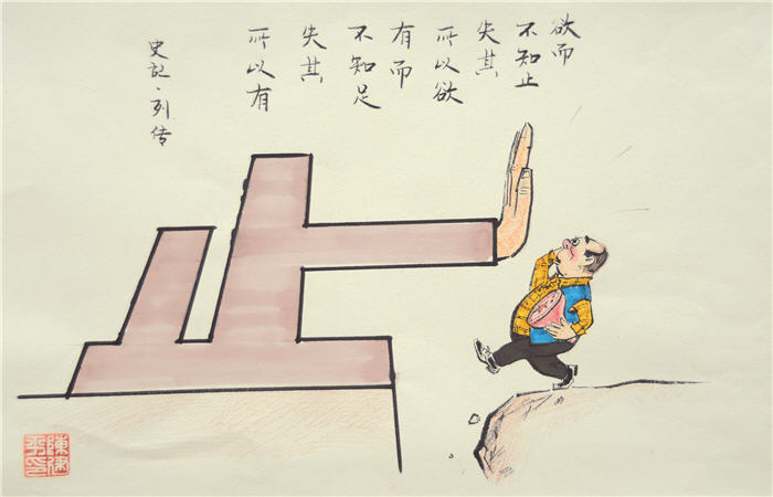 欲不知止(湖北省新闻漫画研究会 陈建平)