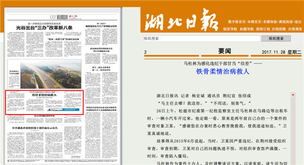 26日上午,松滋市纪委第一纪检监察室主任马杜林在马路边等出租车时,一辆小汽车开过来。他定眼一看,原来是两年前自己办的一个案件的审查对象卫某。“感谢您在办案时悉心教育挽救我,使我迷途知返。”卫某真诚地说。